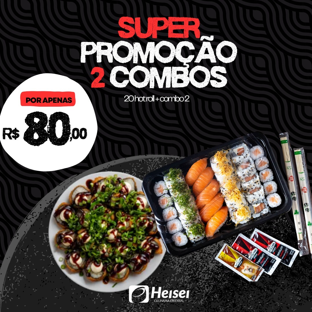 30 unidades 5 uramaki skin (crispy de couve), 5 uramaki patê (crispy de batata doce), 5 nigiri de salmão, 5 uramaki Filadélfia, 10 shakkemaki 20 unidades hot roll com cream cheese cebolinha e tare